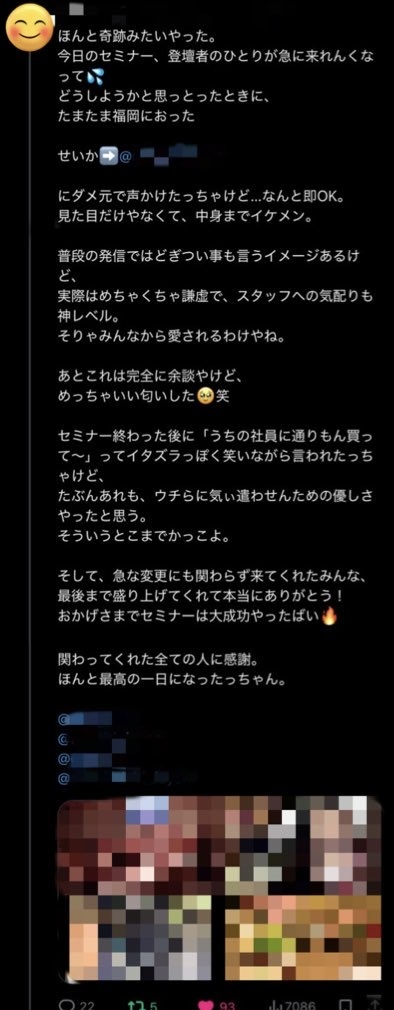 懇親会を終えてホテルに戻ると、友人がこんな投稿をしてくれていた。